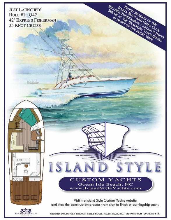 Check out this ad with the artist rendering of the boat that will be in the Barta Boys and Girls Club Billfish tournament brochure. The boat will be sitting at the Beaufort Docks for the tournament starting July 15, 2009.